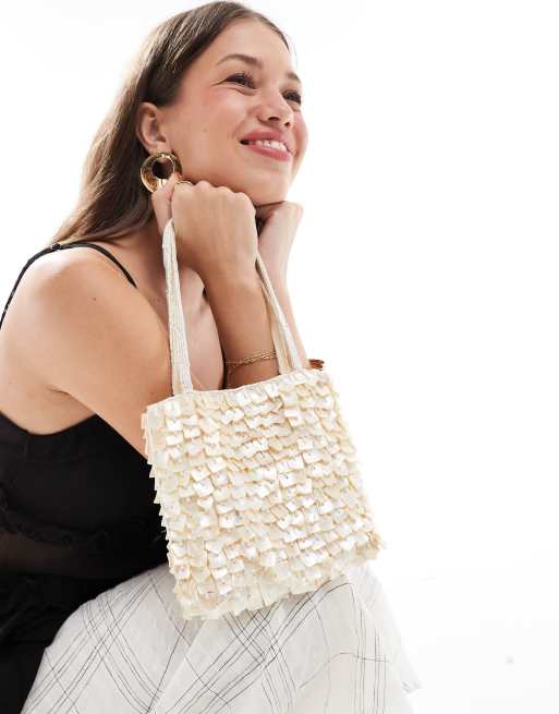 Mango - Borsetta bianca squadrata con perline