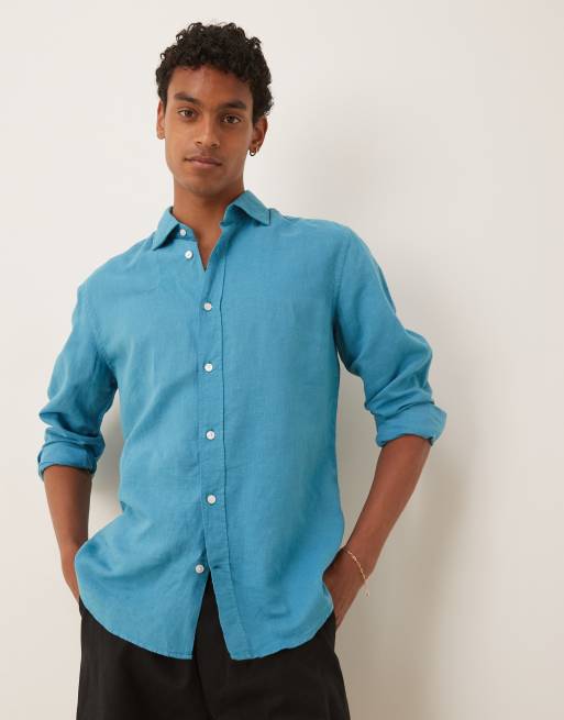 Mango - Camicia a maniche lunghe in misto lino blu acqua