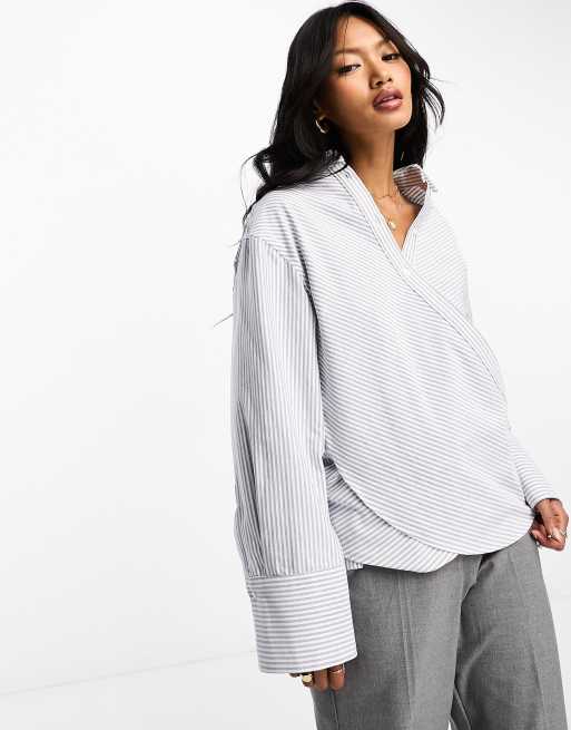 Mango - Camicia a portafoglio blu a righe