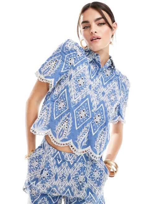 Mango - Camicia azzurra ricamata in coordinato