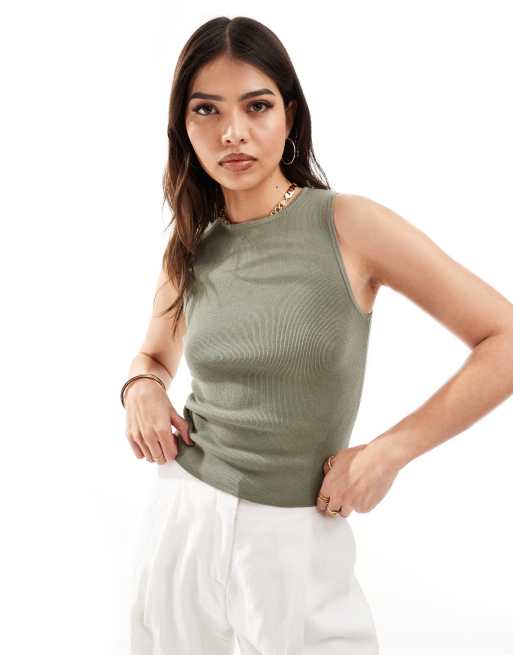 Mango - Canotta accollata kaki