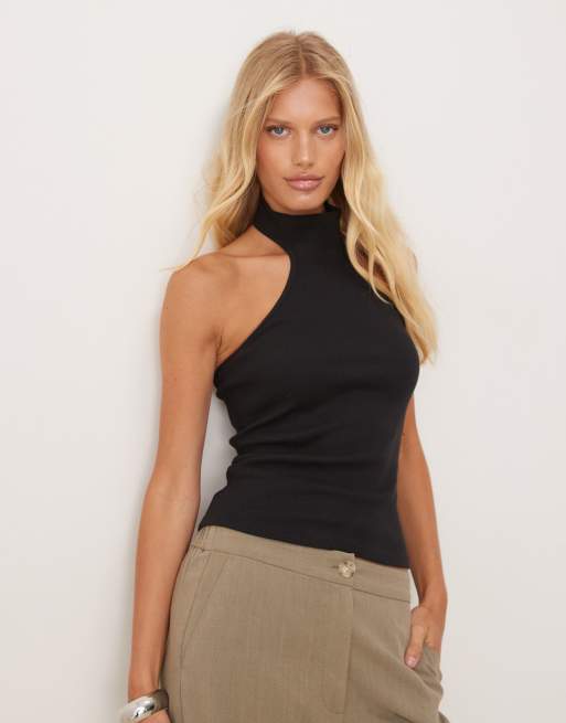 Mango - Canotta nera in cotone allacciata al collo con scollo a vogatore