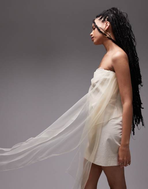 Mango - Capsule - Vestito corto a fascia bianco con fiocco in organza