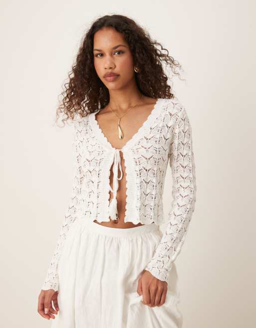 Mango - Cardigan allacciato sul davanti all'uncinetto bianco