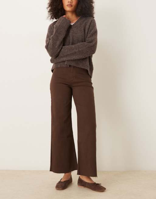 Mango - Catherin - Jeans dritti in misto cotone marroni con bordi sfrangiati