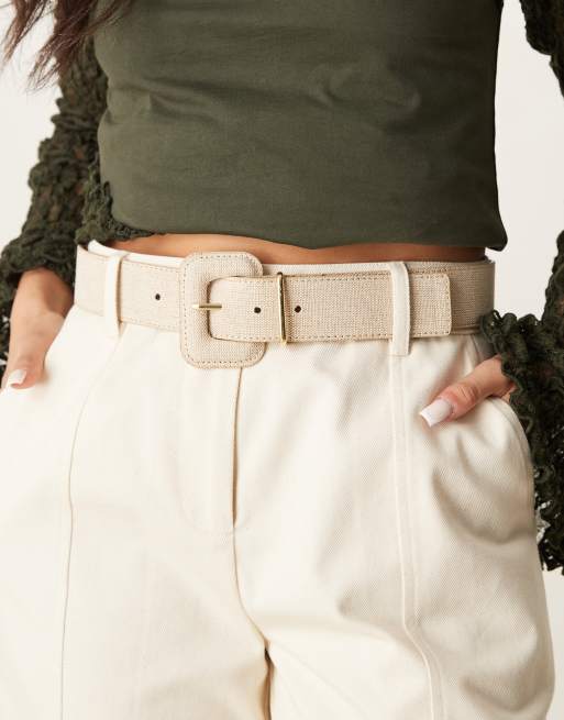 Mango - Cintura in misto lino intrecciata beige chiaro