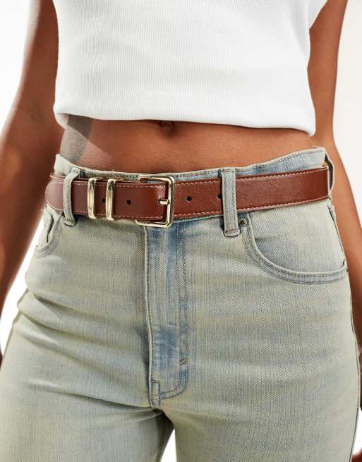 Mango - Cintura marrone con fibbia squadrata