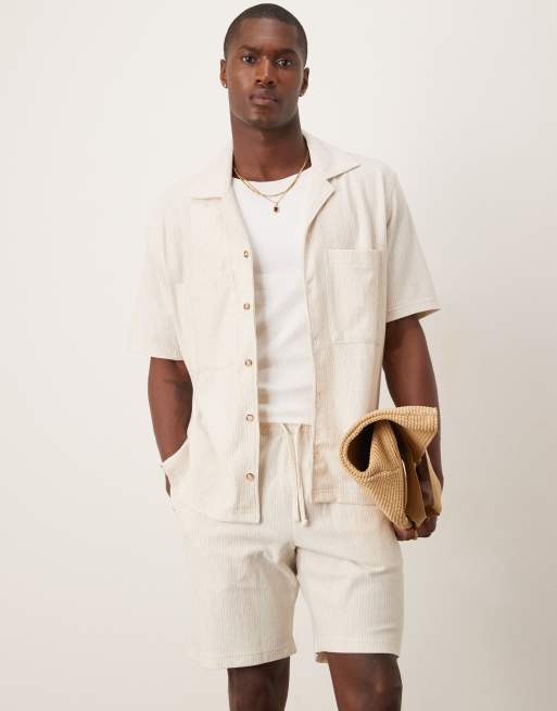 Mango - Coordinato beige testurizzato con pantaloncini e camicia allacciata in vita