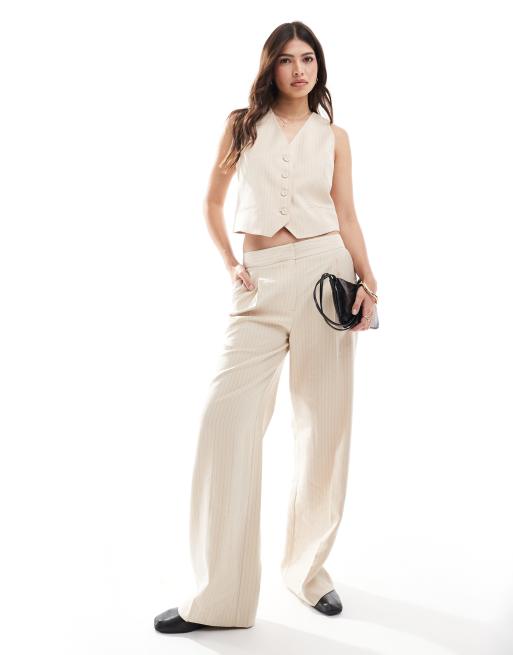 Mango - Coordinato composto da gilet e pantaloni beige gessato sottile