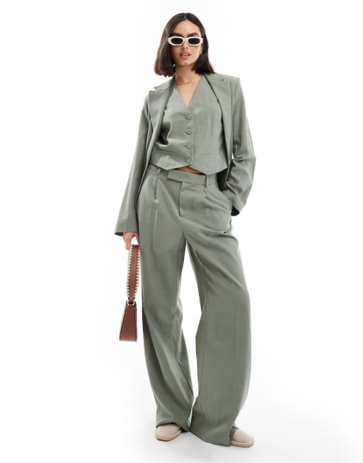 Mango - Coordinato con blazer leggero, gilet e pantaloni verde chiaro