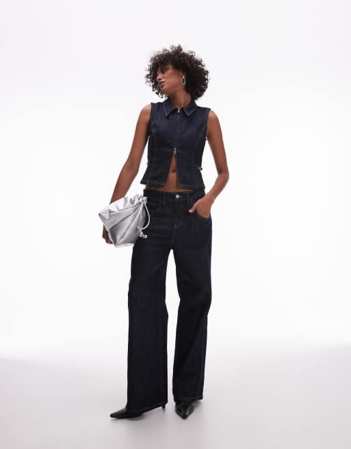 Mango - Coordinato in denim con gilet e pantaloni blu scuro con zip