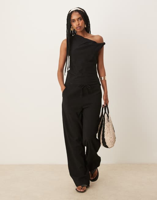 Mango - Coordinato nero con pantaloni dritti e top in poliammide intrecciato