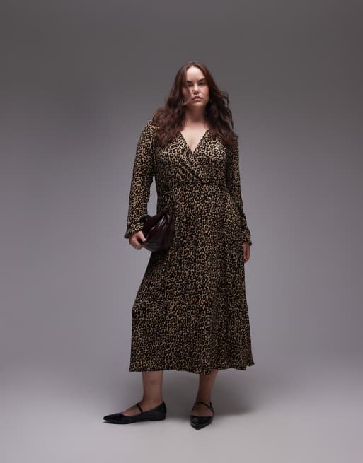 Mango Curve - Vestito midi marrone leopardato