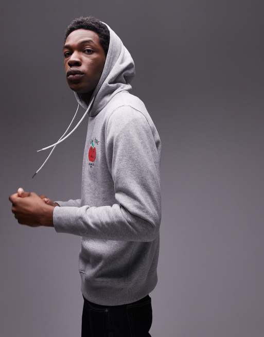 Mango - Felpa con cappuccio grigia con stampa di "New York" e mela