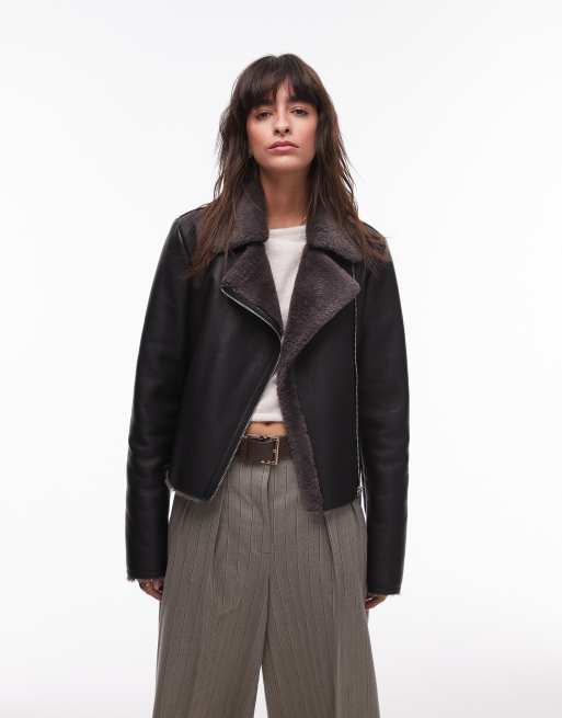Mango - Giacca stile aviatore effetto montone nera