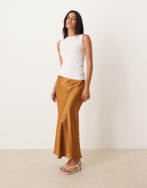 Mango - Gonna midi in raso marrone