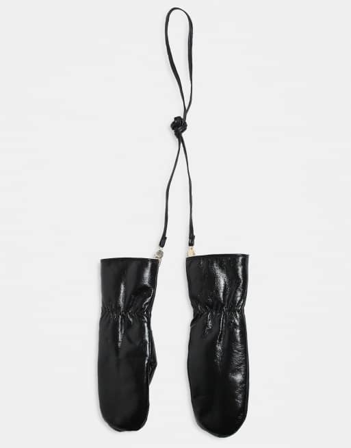 Mango - Guanti in pelle color nero intenso foderati in pelliccia sintetica