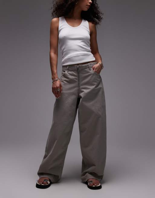 Mango - Jeans ampi grigi con zip sul davanti