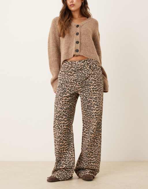 Mango - Jeans dritti 100% cotone con stampa leopardata