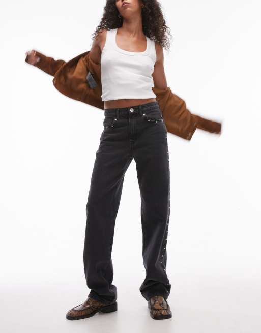 Mango - Jeans neri con borchie laterali e sulle tasche