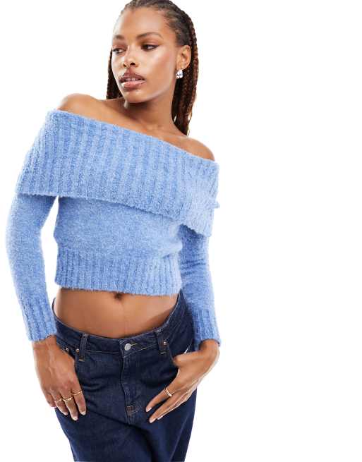 Mango - Maglione azzurro con scollo alla Bardot
