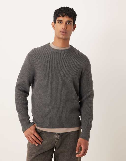 Mango - Maglione comodo in misto lana a coste antracite