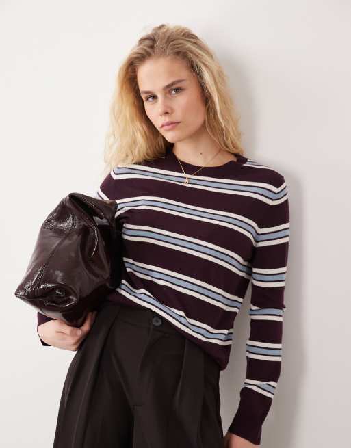 Mango - Maglione leggero a righe bordeaux e blu