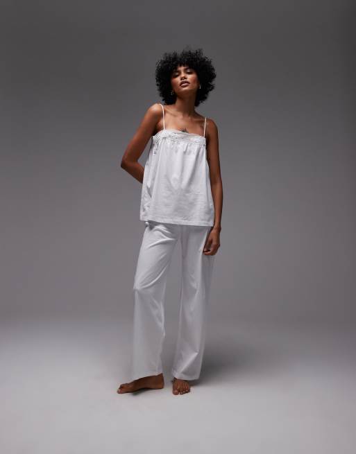 Mango - Mix & Match - Pantaloni del pigiama a fondo ampio in cotone bianchi con finiture in pizzo