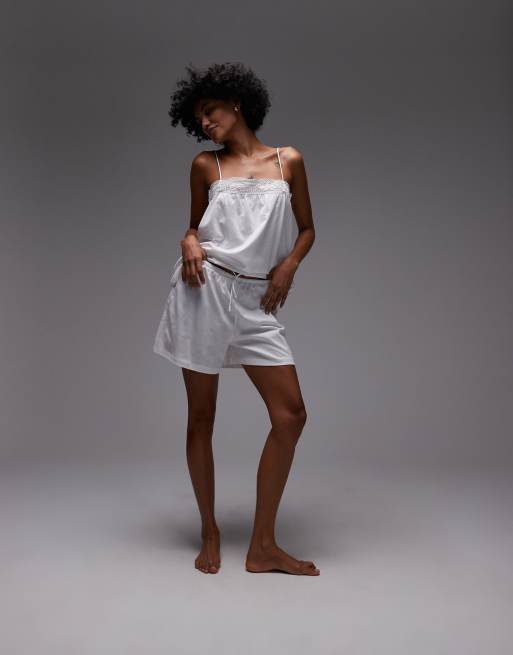 Mango - Pantaloncini del pigiama mix & mango bianchi in cotone con finiture in pizzo