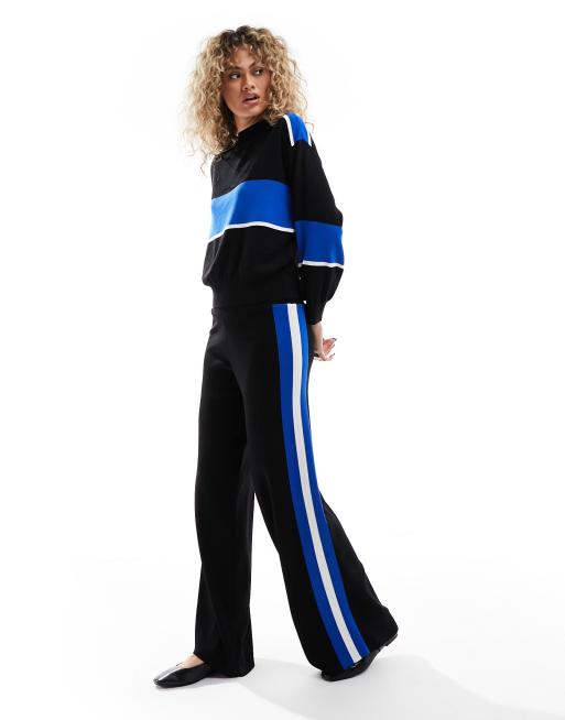 Mango - Pantaloni comodi a zampa neri con righe in coordinato