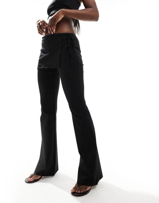 Mango - Pantaloni dritti neri con allacciatura laterale