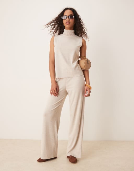 Mango - Pantaloni in maglia leggeri beige chiaro in coordinato