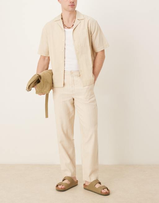 Mango - Pantaloni vestibilità comoda in misto lino beige a righe