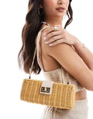 Mango - Pochette neutra in rafia con fibbia