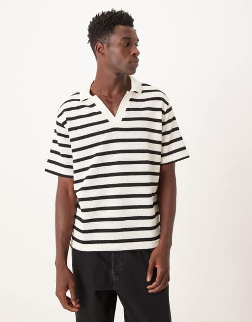 Mango - Polo a maniche corte in misto cotone bianca a righe nere vestibilità comoda