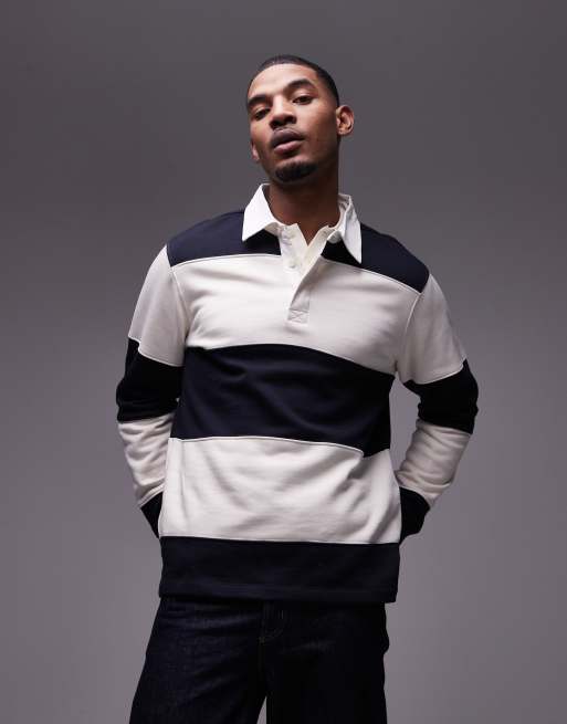 Mango - Polo stile rugby a righe color blu navy e bianco