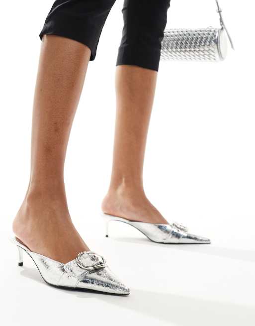 Mango - Scarpe con tacco e fibbia frontale color argento