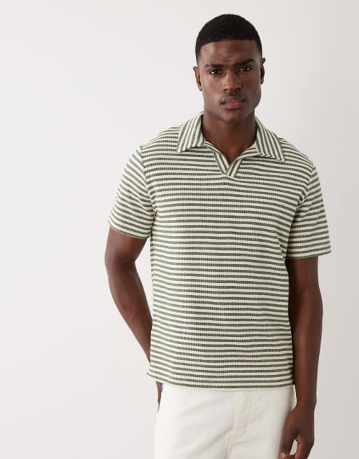 Mango - T-shirt in maglia kaki a righe con scollo a rever