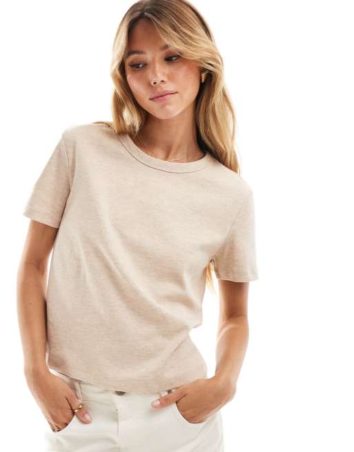Mango - T-shirt premium beige slavata
