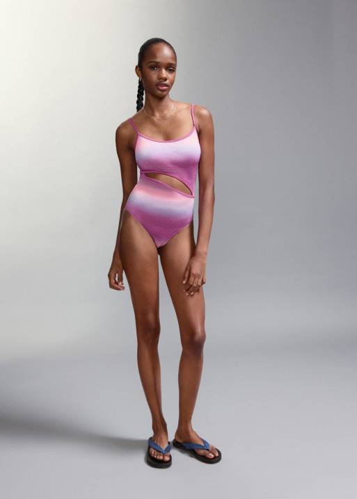Mango Teen - Costume da bagno con cut-out rosa e blu con stampa glitterata