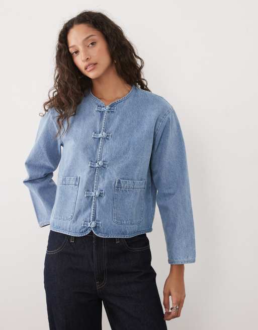 Mango Teen - Giacca di jeans senza colletto 100% cotone blu medio