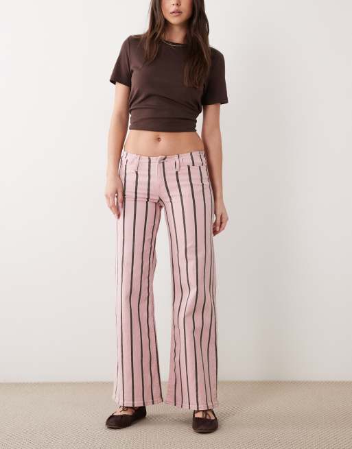 Mango - Teen - Jeans dritti in misto cotone rosa e marrone a righe