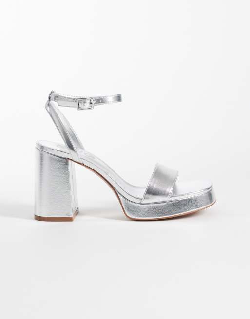Mango - Teen - Sandali argento con tacco largo e plateau