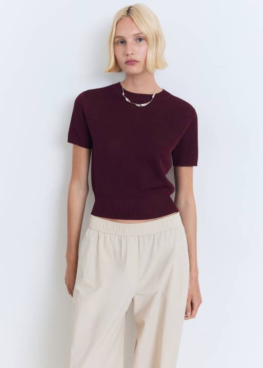 Mango - Top in maglia rosso scuro a maniche corte
