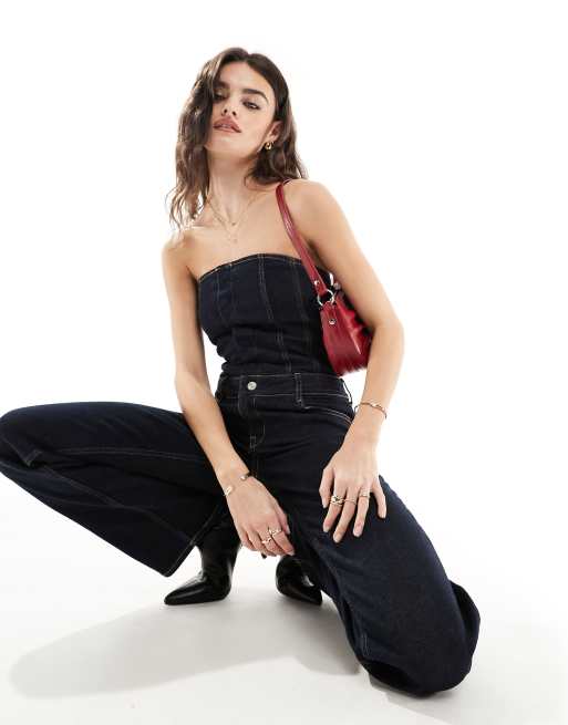 Mango - Tuta jumpsuit a fascia in denim blu scuro sartoriale