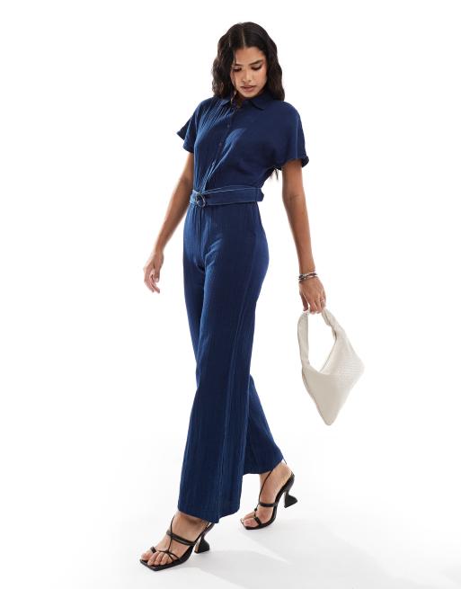 Mango - Tuta jumpsuit a maniche corte blu scuro con cintura