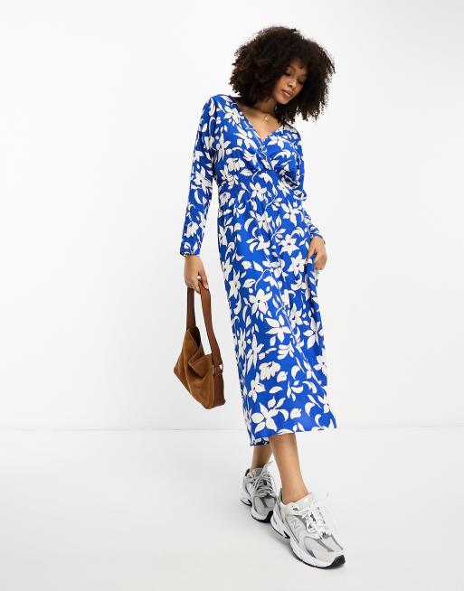 Mango - Vestito a portafoglio blu a fiori