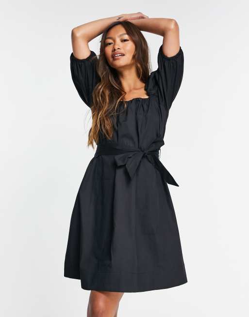 Mango - Vestito in popeline con maniche a sbuffo nero