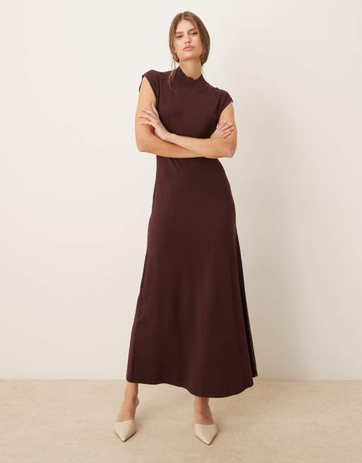 Mango - Vestito lungo in maglia rosso scuro