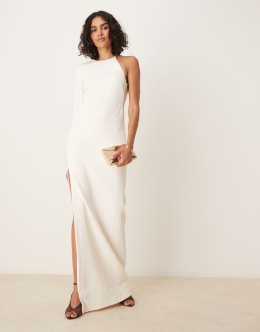 Mango - Vestito lungo monospalla premium bianco con spacco laterale